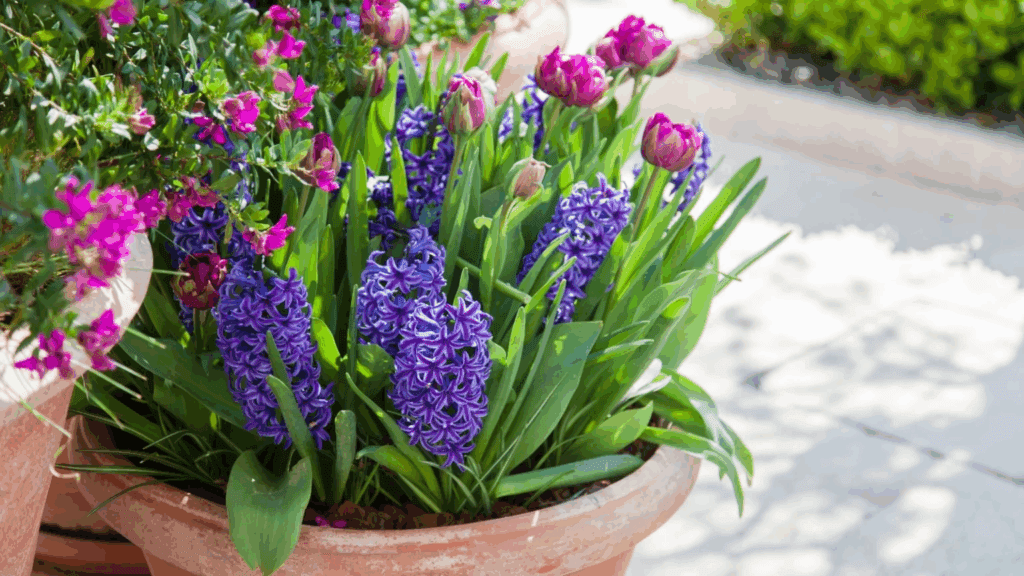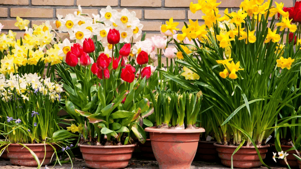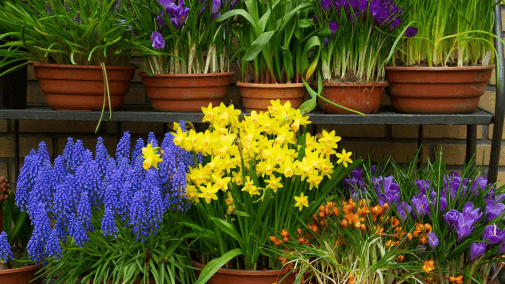 Mesmo que os bulbos em vasos não se destaquem durante o inverno, com o fim da geada você será recompensado com uma profusão de flores em plena floração. Ao plantar em recipientes, você controla a qualidade do solo e a exposição ao sol, permitindo realçar seus espaços favoritos ao mover os vasos conforme necessário.